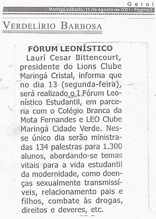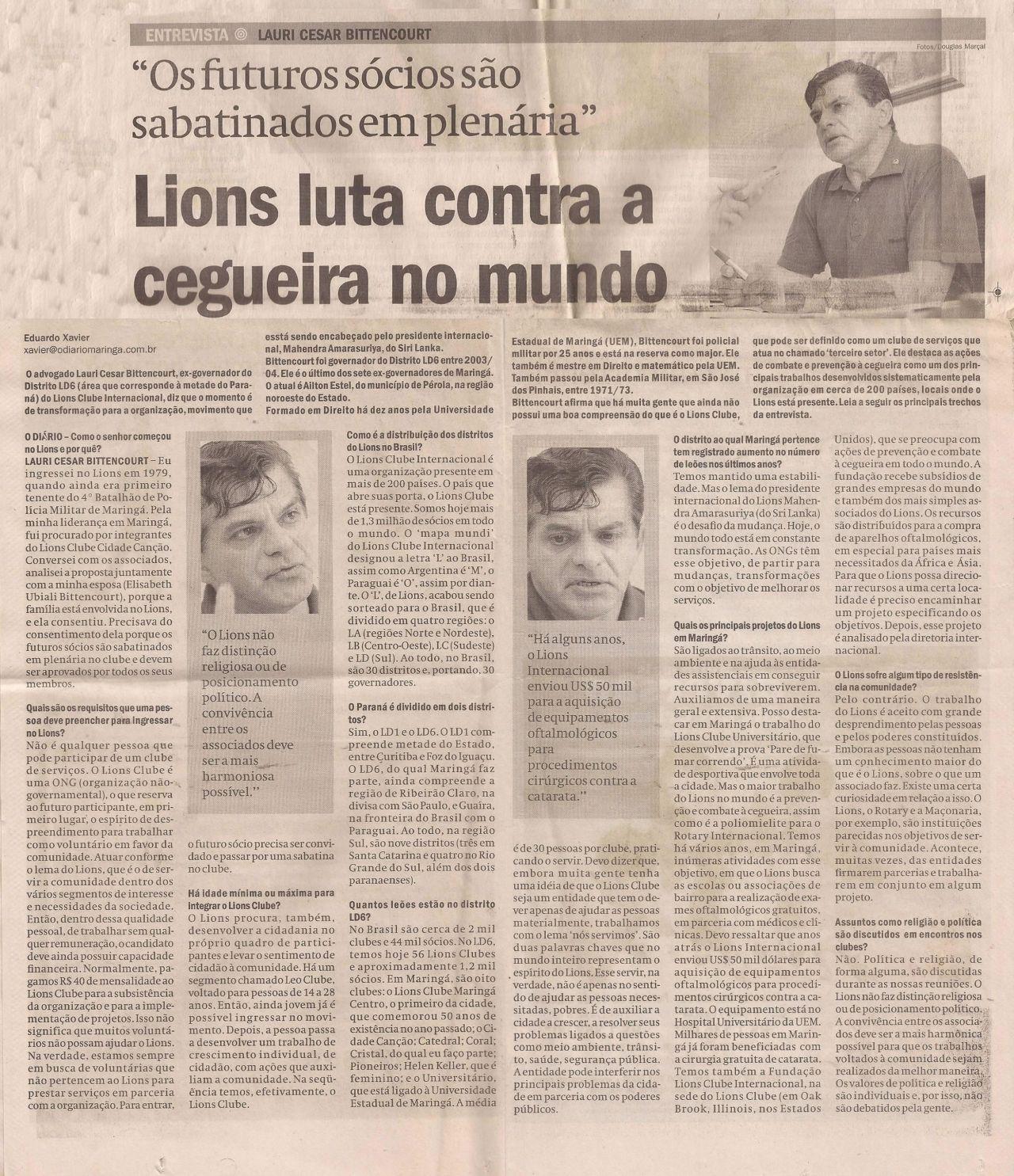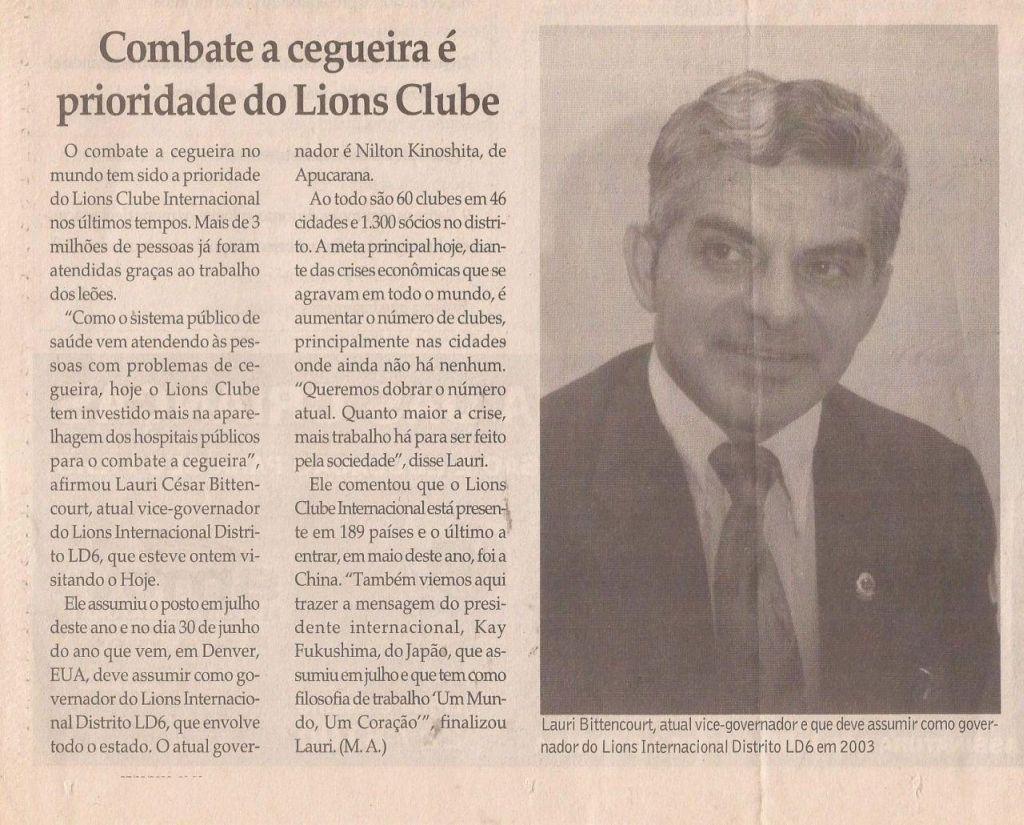 - LIONS CLUBE – ARTIGOS NA IMPRENSA