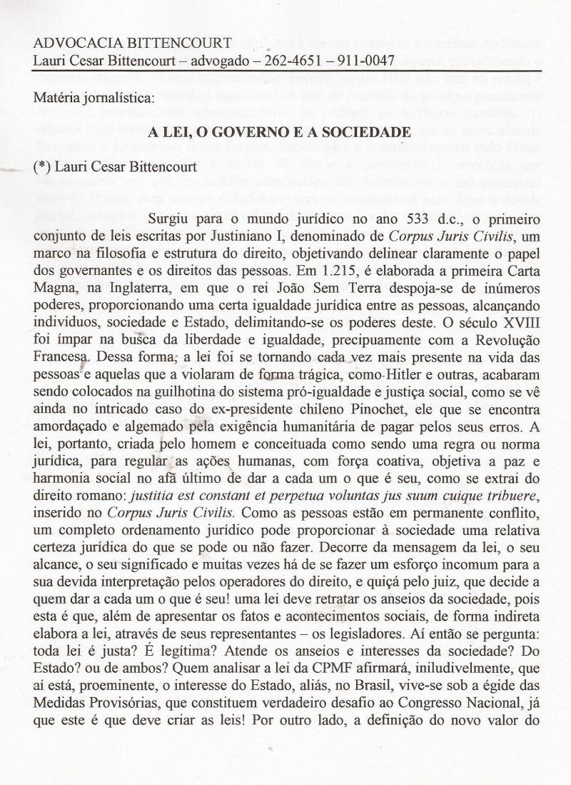 | 09 - A LEI, O GOVERNO E A SOCIEDADE 1/2.(clique aqui para ver a matéria) |