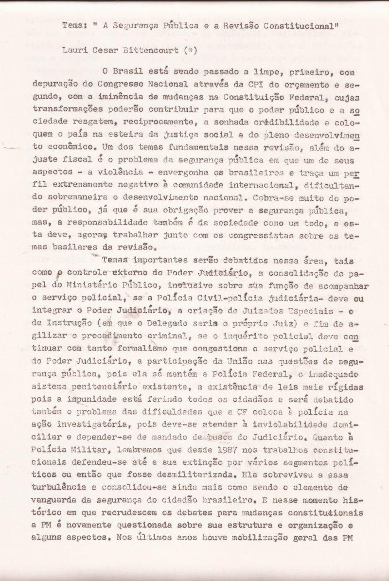 | 13 - A SEGURĂNĂA PĂBLICA E REVISĂO CONSTITUCIONAL 1/2.(clique aqui para ver a matéria) |