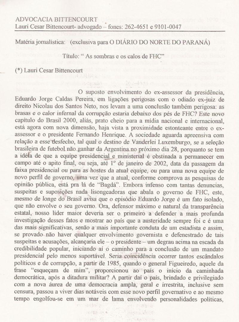 | 15 - A SOMBRA E OS CALOS DE FHC 1/2.(clique aqui para ver a matéria) |