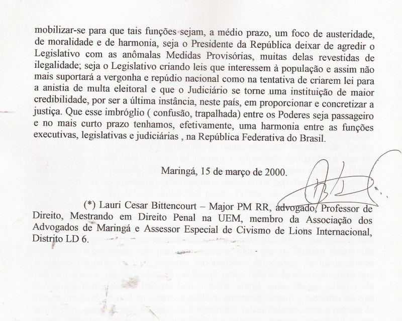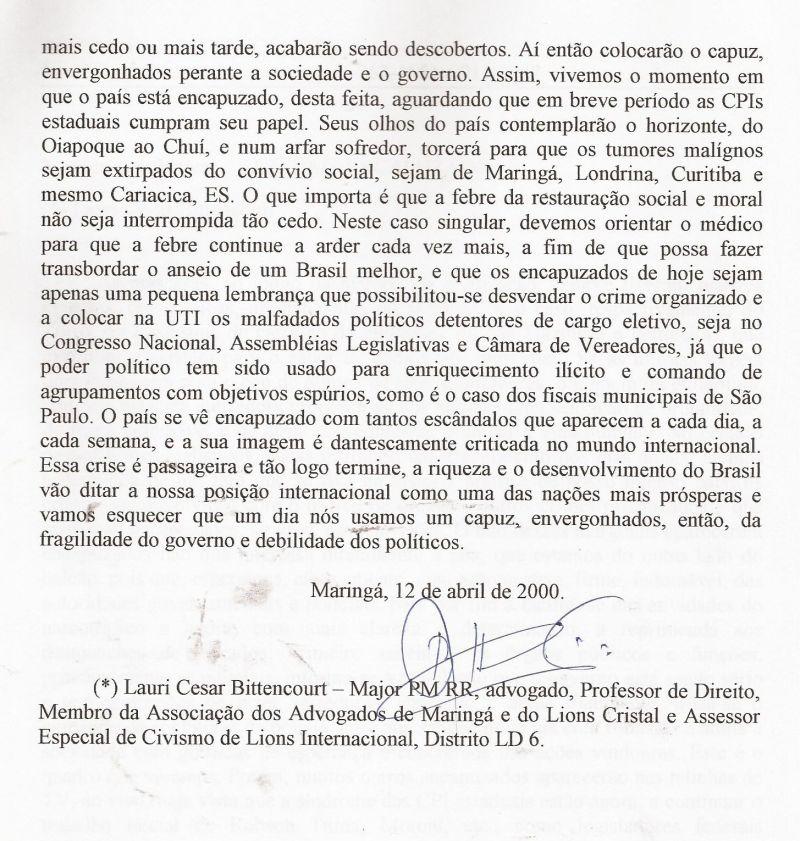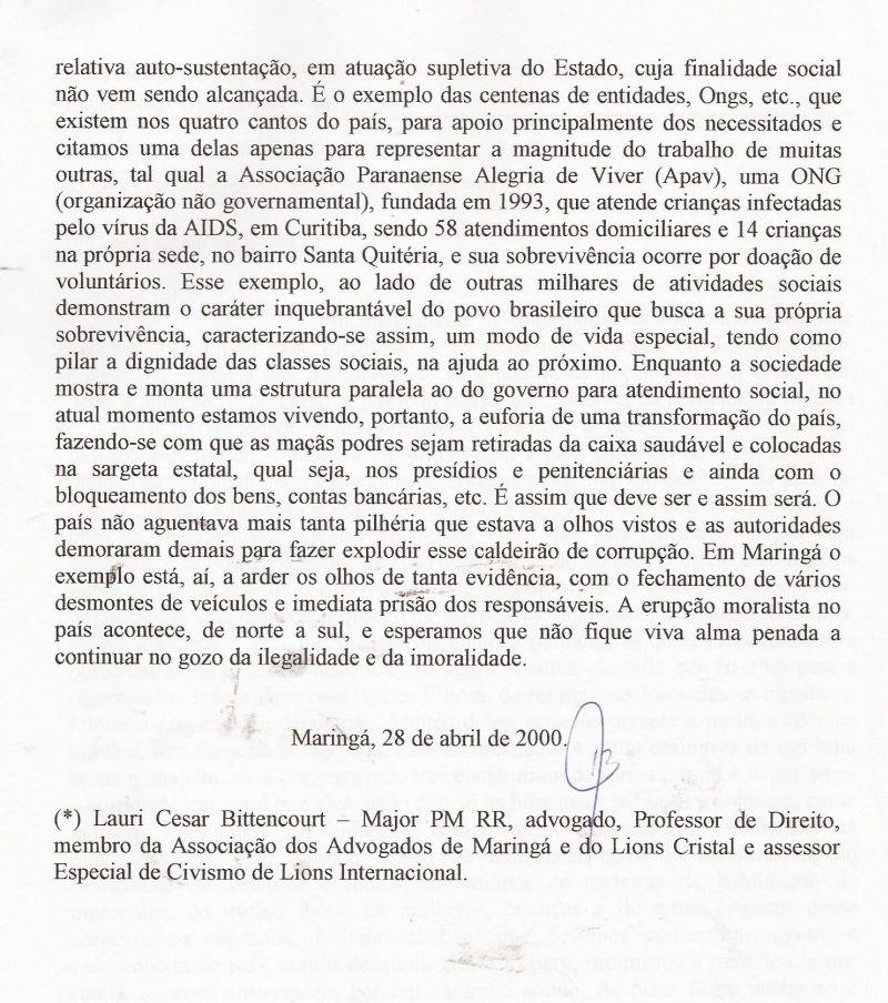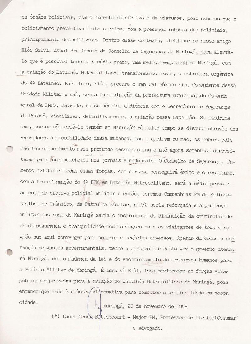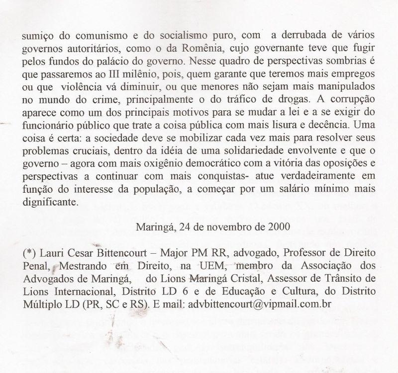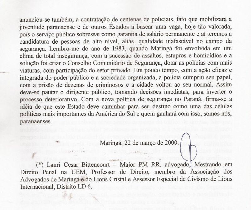 | 51 - MENSAGEM AO CONSELHO DE SEGURANĂA DE MARINGĂ 2/2.(clique aqui para ver a matéria) |
