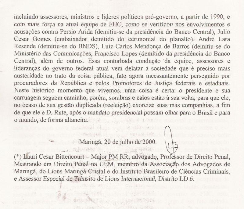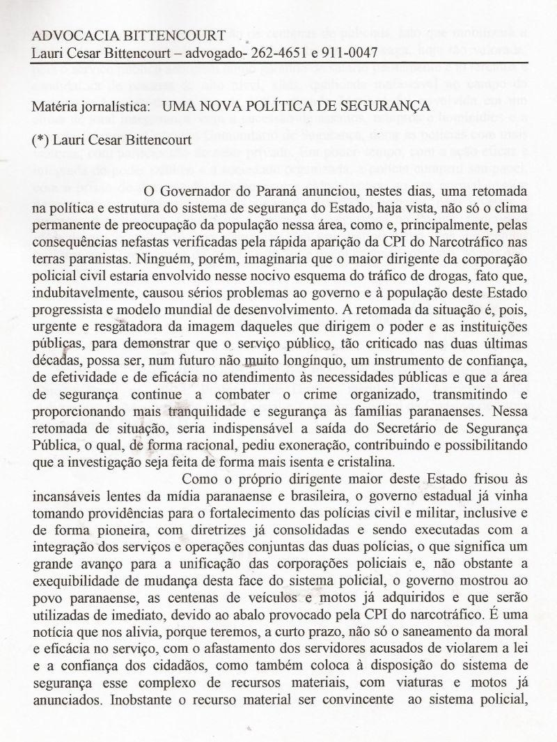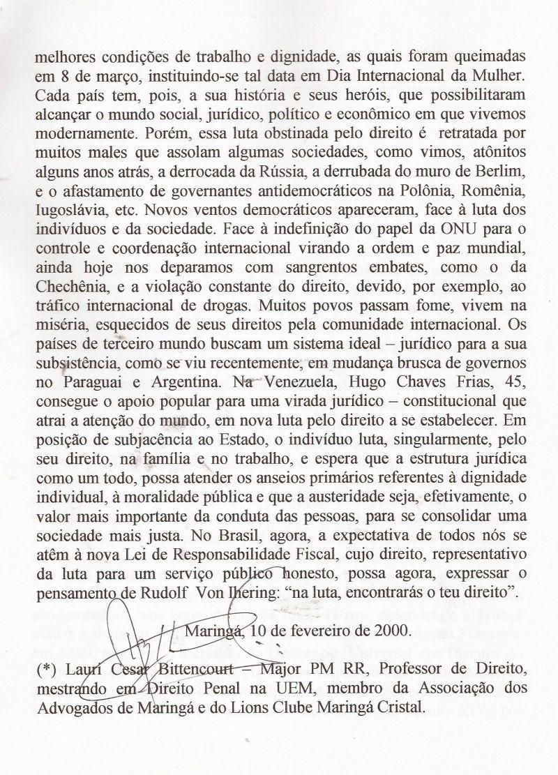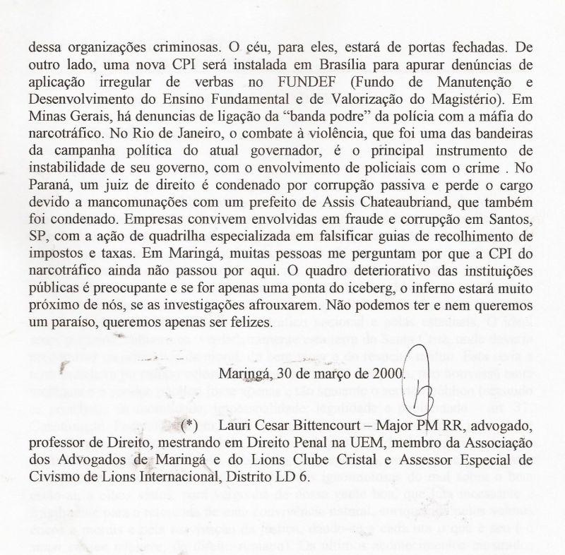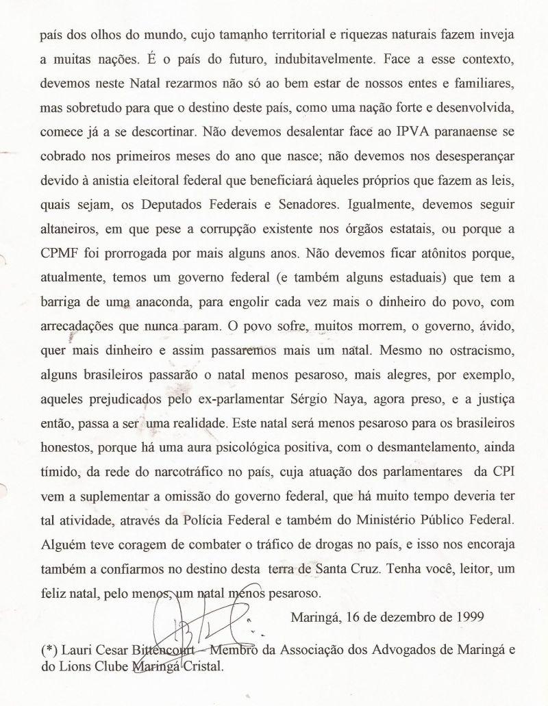 | 51 - MENSAGEM AO CONSELHO DE SEGURANĂA DE MARINGĂ 2/2.(clique aqui para ver a matéria) |