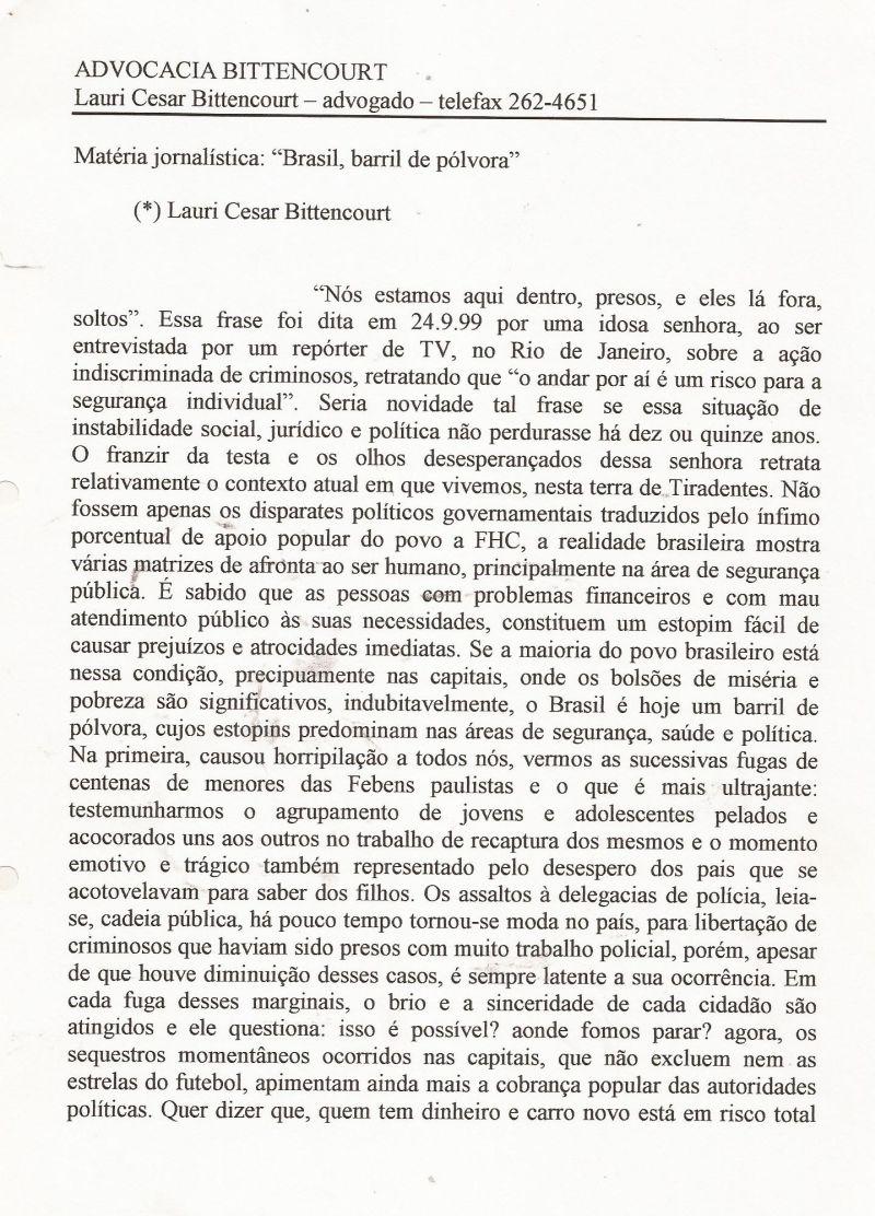 | 20 - BRASIL, BARRIL DE PĂLVORA 2/2.(clique aqui para ver a matéria) |
