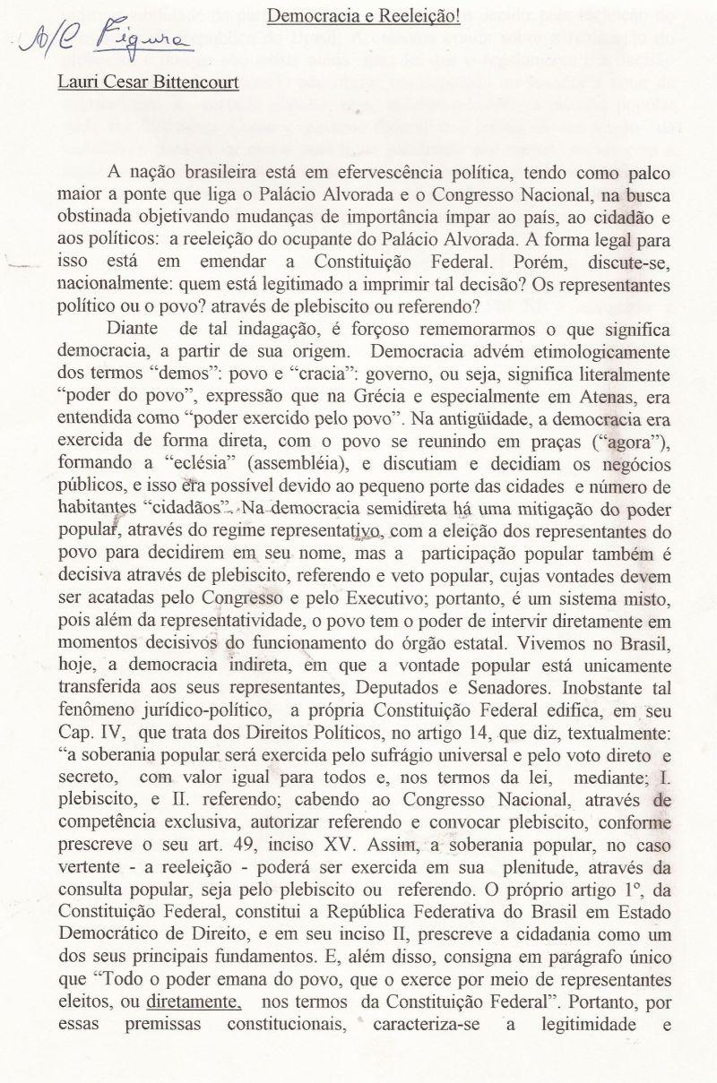 | 21 - DEMOCRACIA E REELEIĂĂO 1/2.(clique aqui para ver a matéria) |