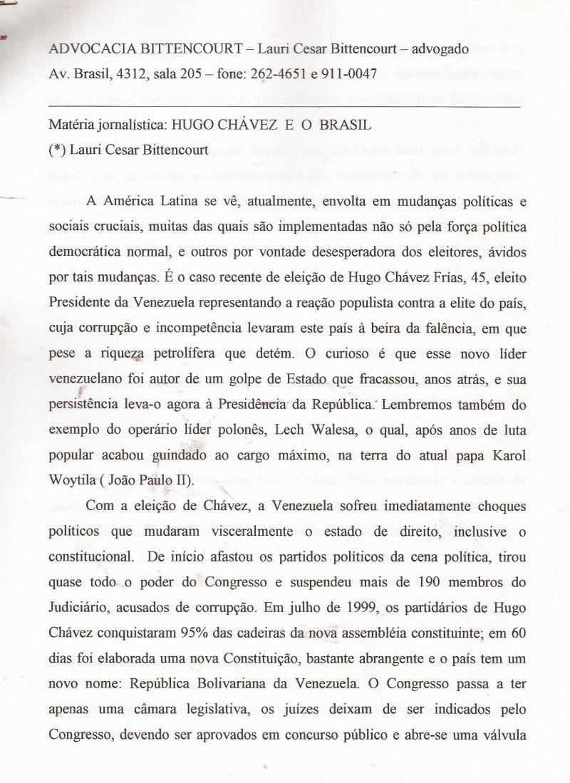 | 31 - HUGO CHAVEZ E O BRASIL 3/3.(clique aqui para ver a matéria) |