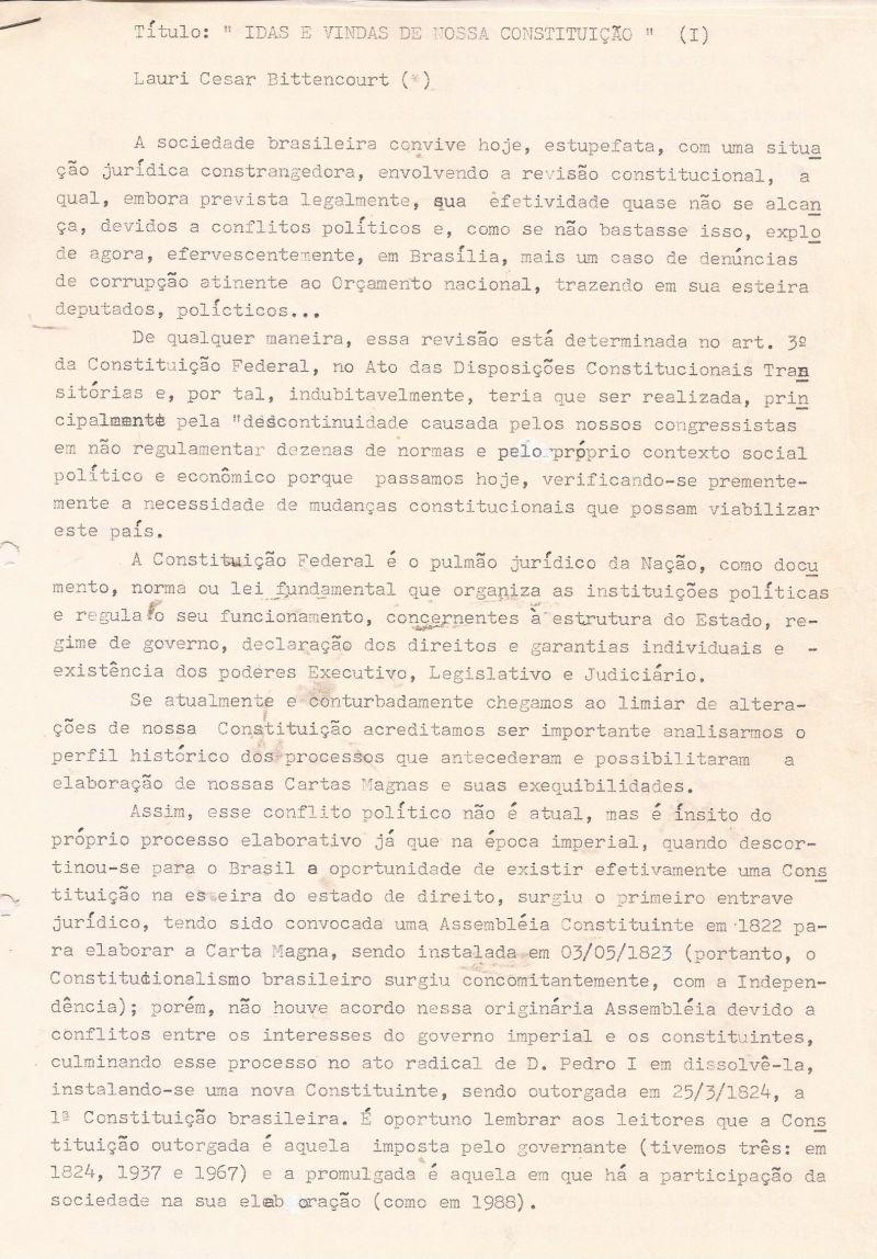 | 32 - IDAS E VINDAS DE NOSSA CONSTITUIĂĂO 1/3.(clique aqui para ver a matéria) |