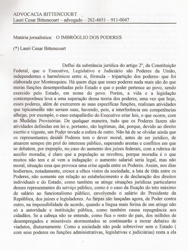 | 38 - O IMBRĂGLIO DOS PODERES 1/2.(clique aqui para ver a matéria) |