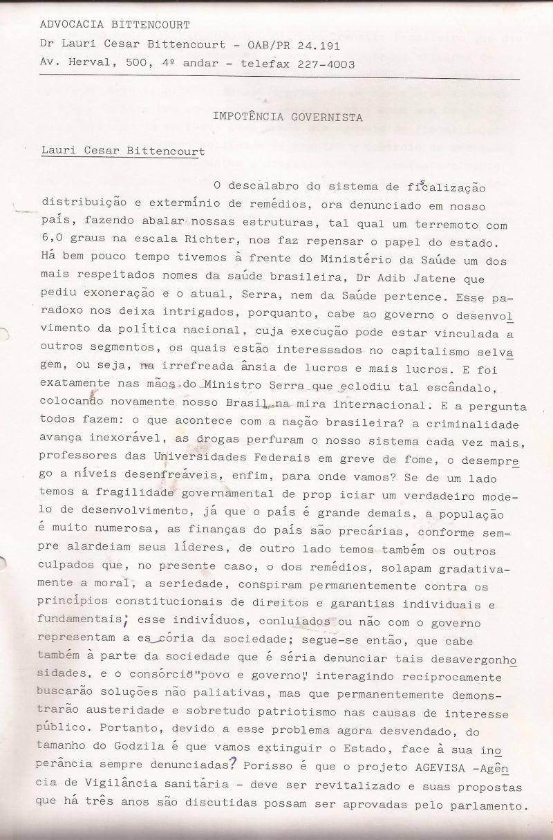 | 40 - IMPOTĂNCIA GOVERNISTA 1/2.(clique aqui para ver a matéria) |