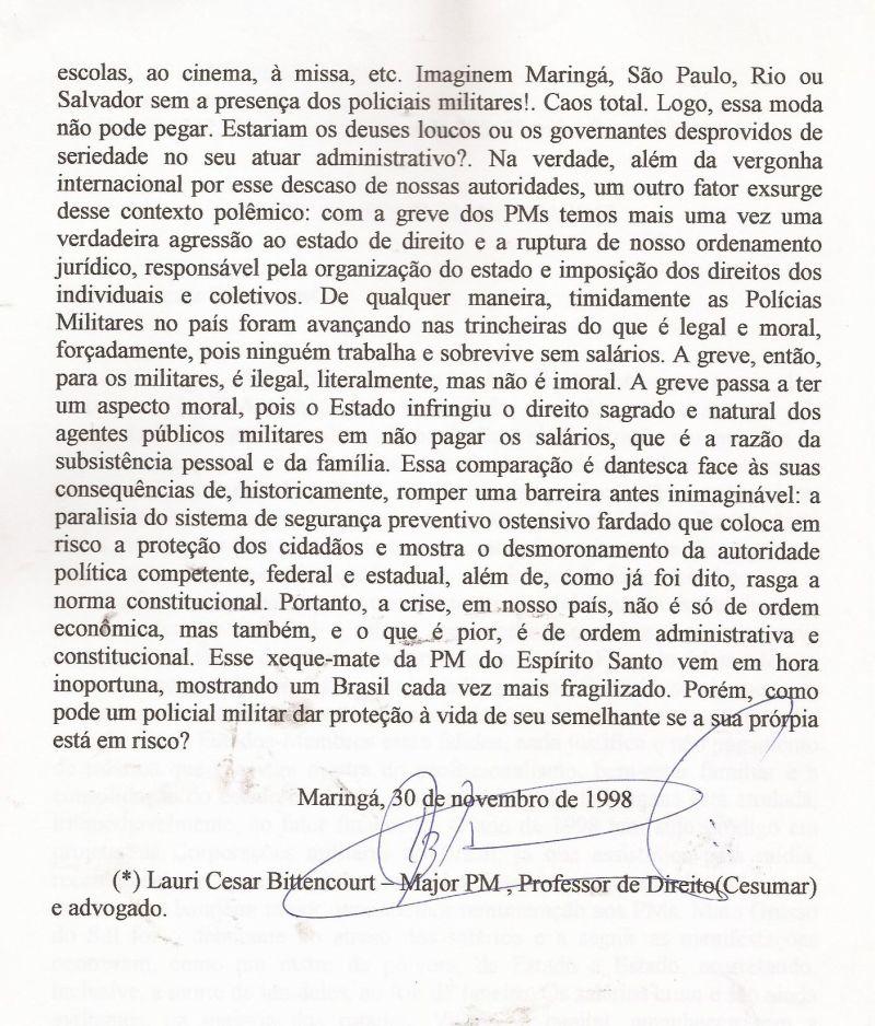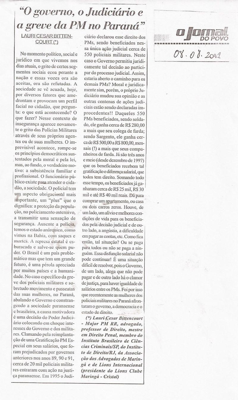 | 42 - O GOVERNO, O JUDICIĂRIO, A GREVE DA PM NO PARANĂ.(clique aqui para ver a matéria) |