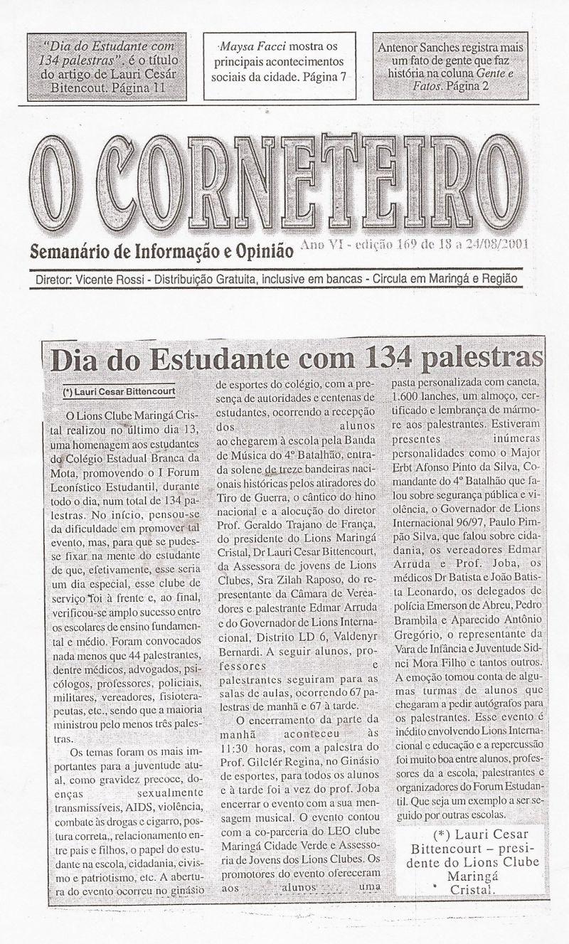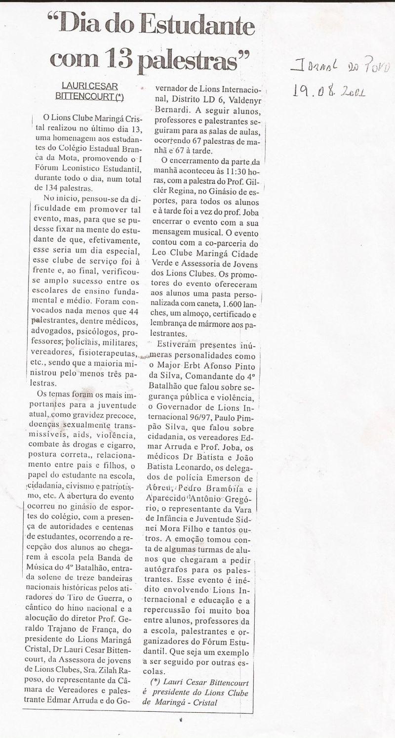 | 44 - DIA DO ESTUDANTE COM 13 PALESTRAS.(clique aqui para ver a matéria) |