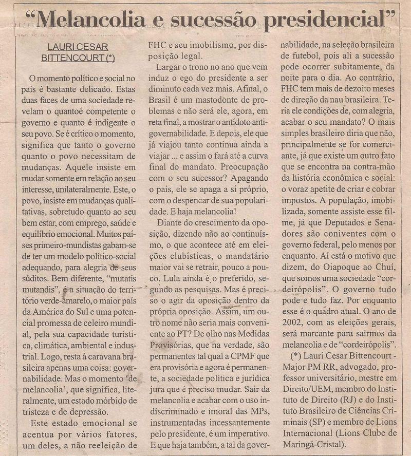 | 45 - MELANCOLIA E SUCESSĂO PRESIDENCIAL.(clique aqui para ver a matéria) |