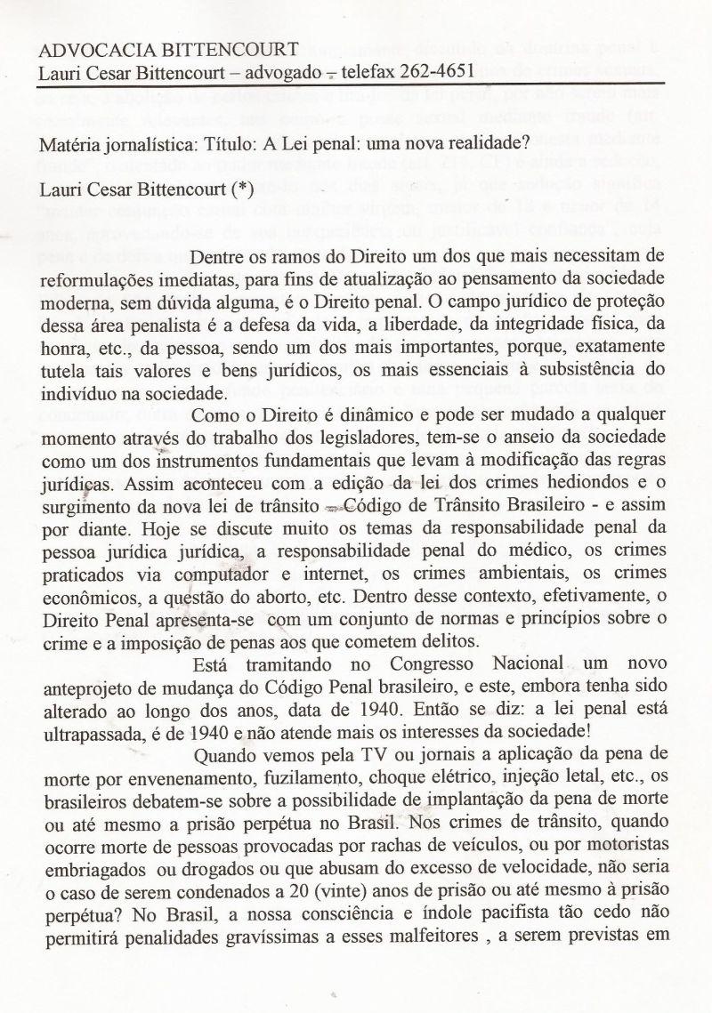 | 46 - A LEI PENAL: UMA NOVA REALIDADE? 1/2.(clique aqui para ver a matéria) |
