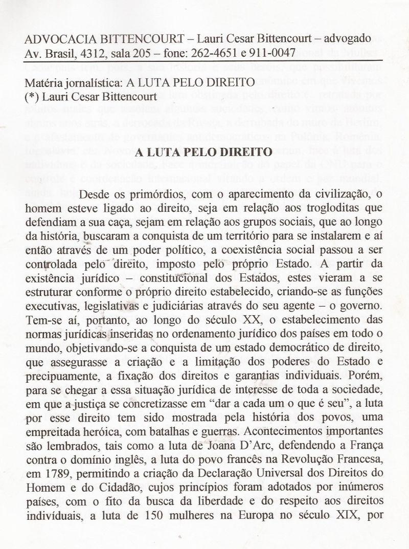 | 48 - A LUTA PELO DIREITO 1/2.(clique aqui para ver a matéria) |