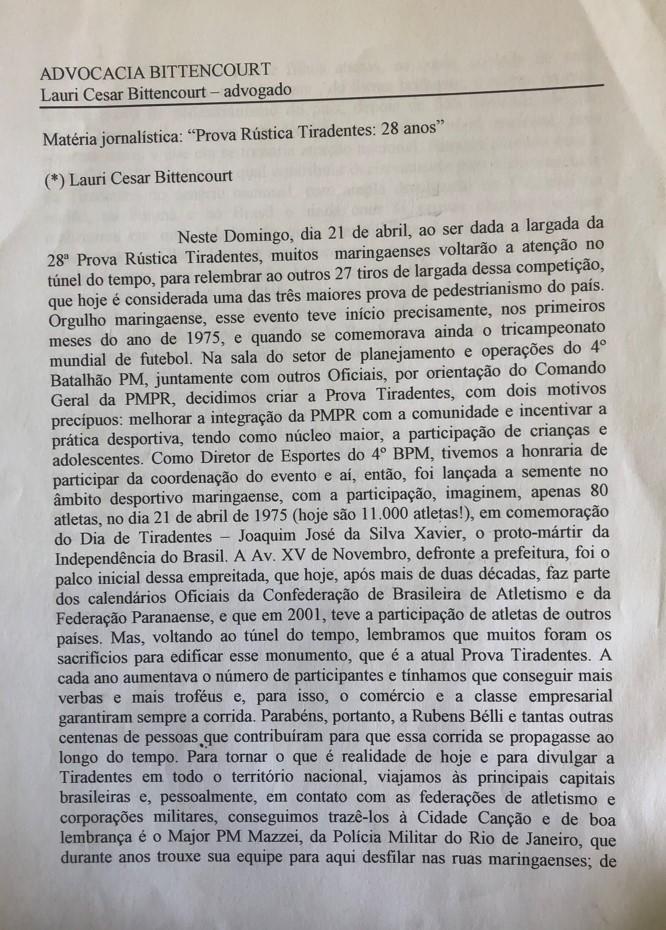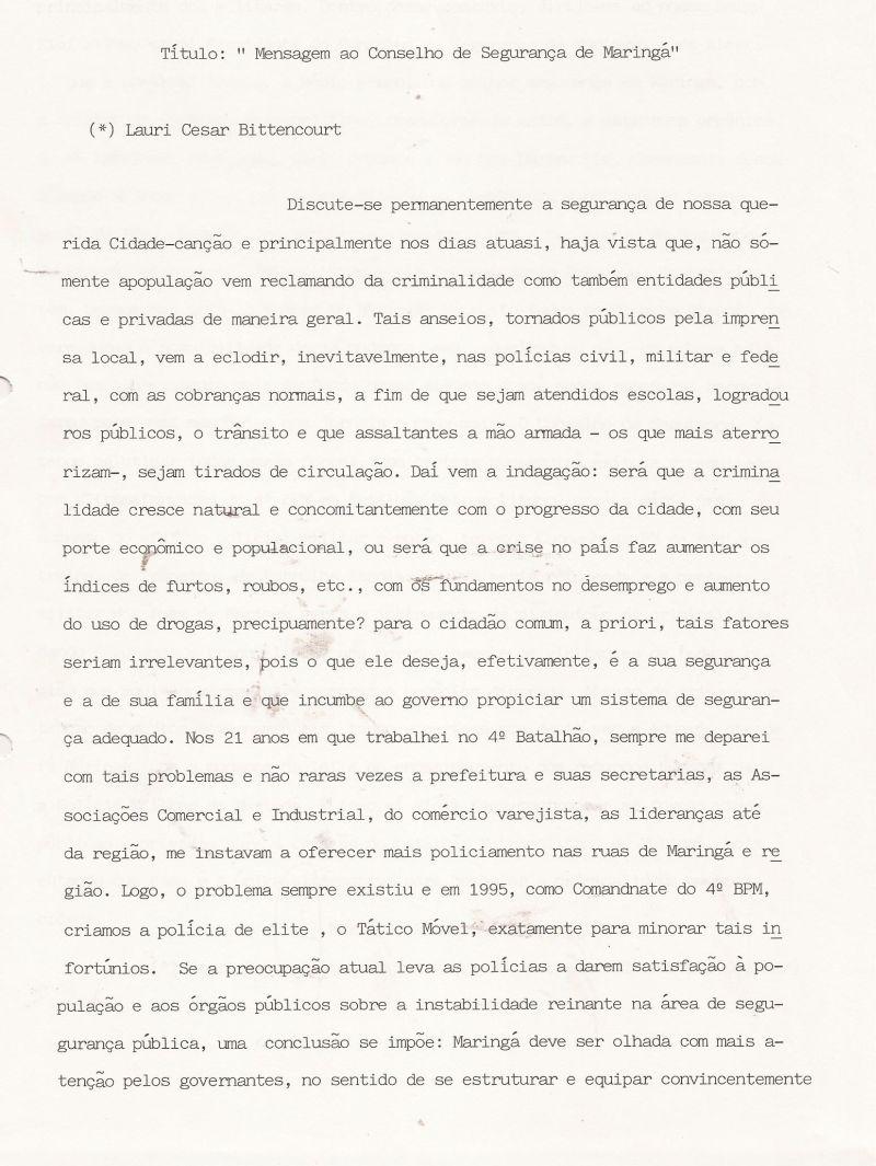 | 50 - MENSAGEM AO CONSELHO DE SEGURANĂA DE MARINGĂ 1/2.(clique aqui para ver a matéria) |