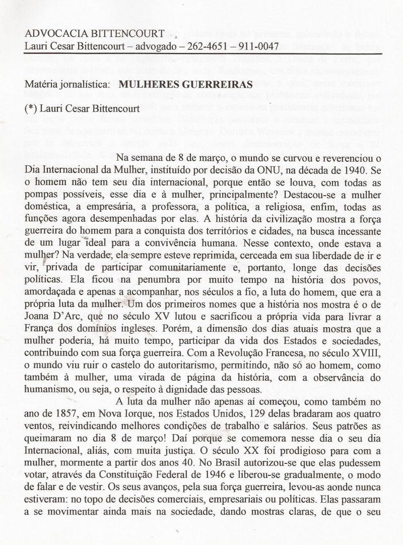 | 53 - MULHERES GUERREIRAS 2/2.(clique aqui para ver a matéria) |