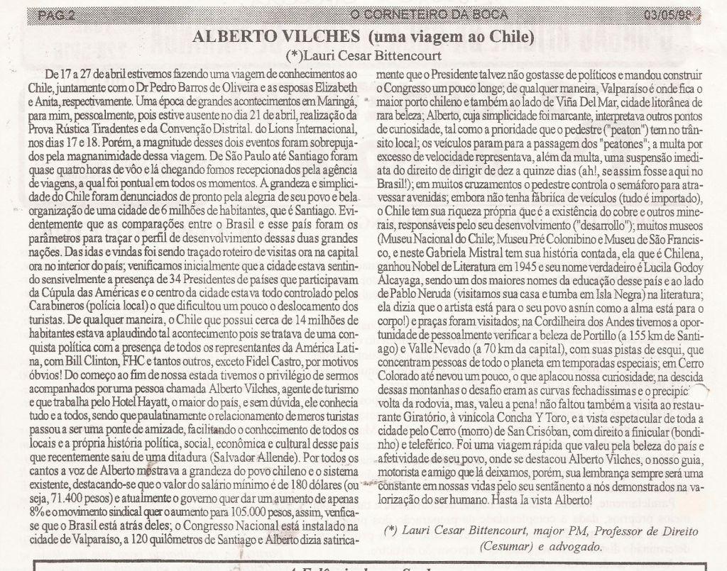 | 57 - ALBERTO VILCHES - UMA VIAGEM AO CHILE(clique aqui para ver a matéria) |