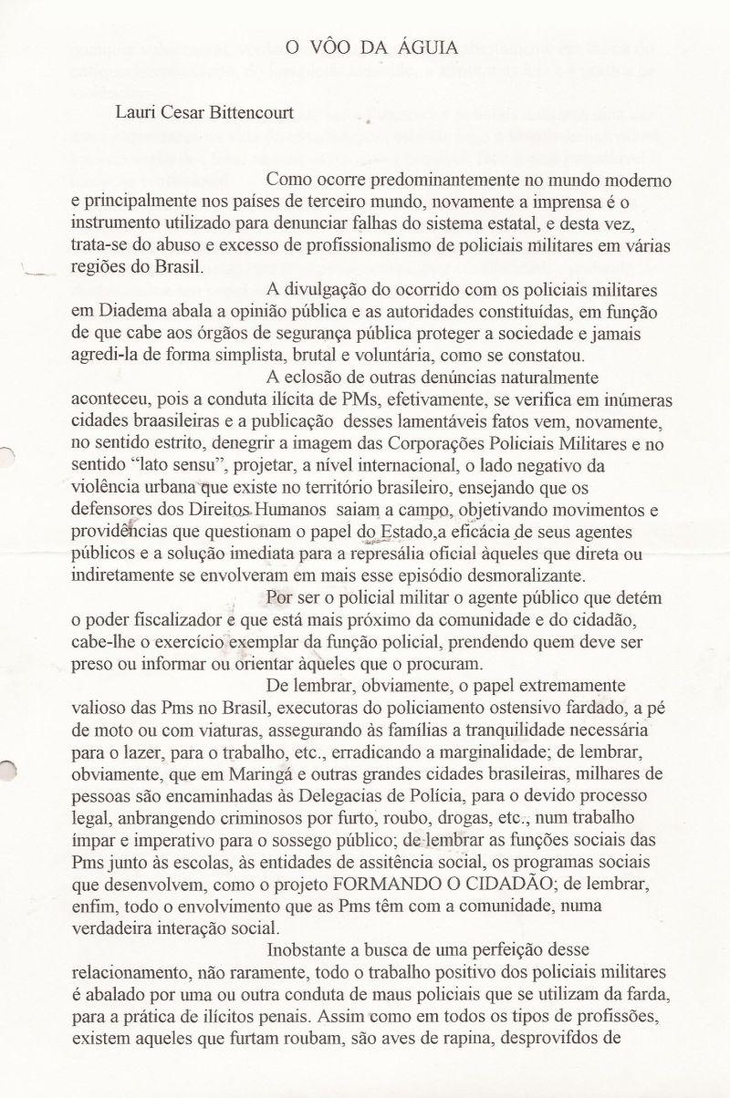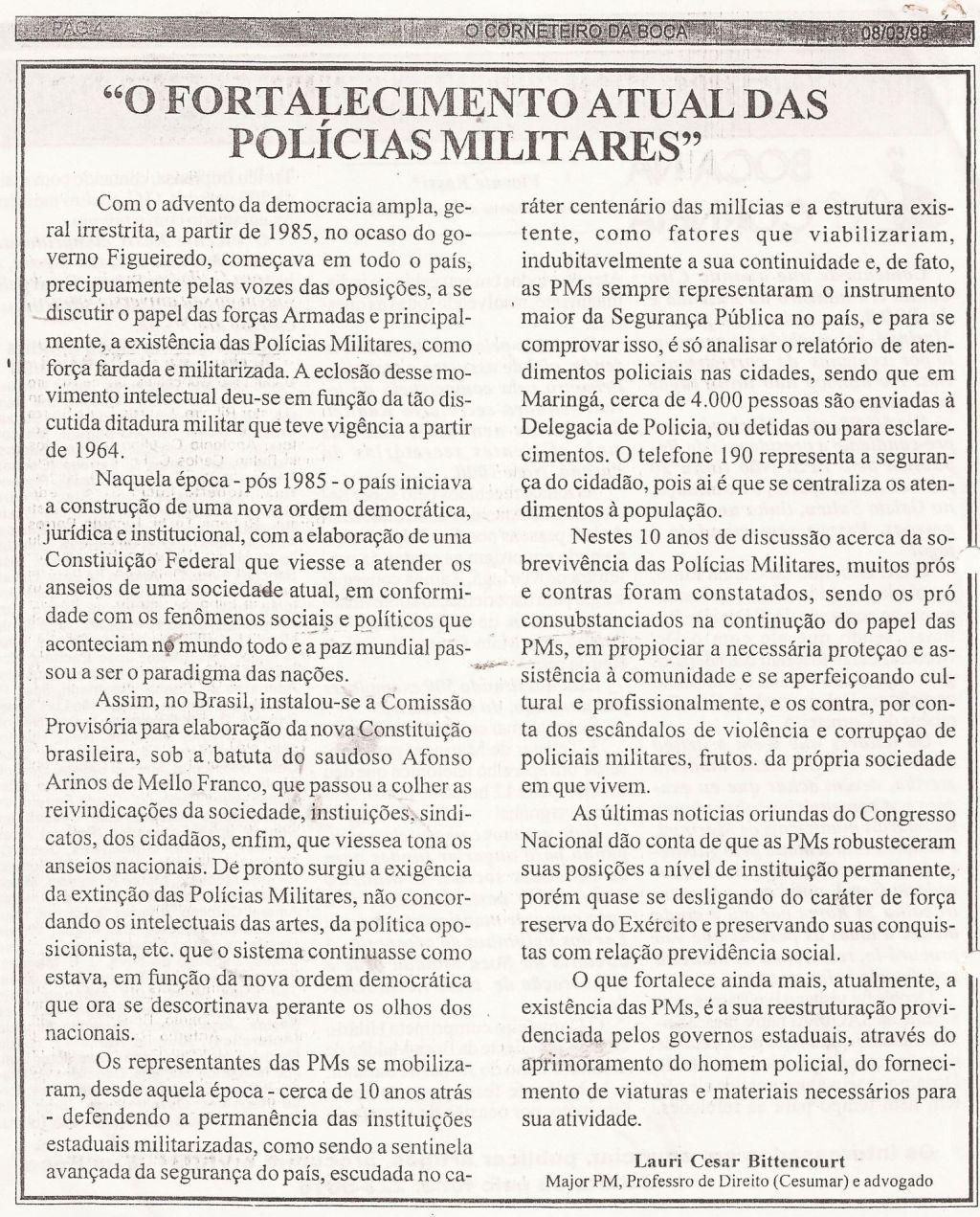 | 60 - O FORTALECIMENTO ATUAL DAS POLICIAS MILITARES(clique aqui para ver a matéria) |
