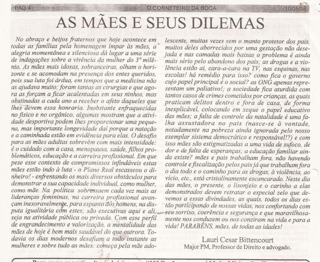 | 61 - AS MĂES E SEUS DILEMAS(clique aqui para ver a matéria) |