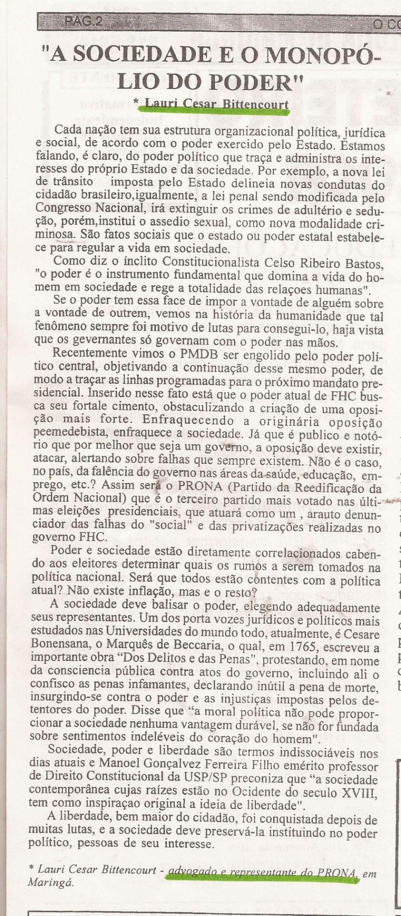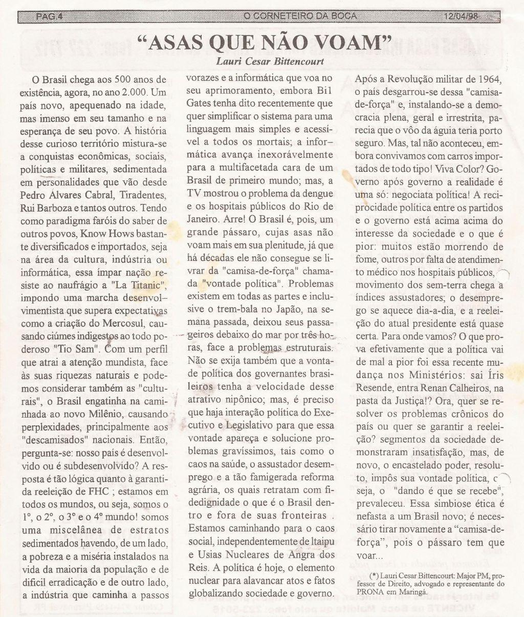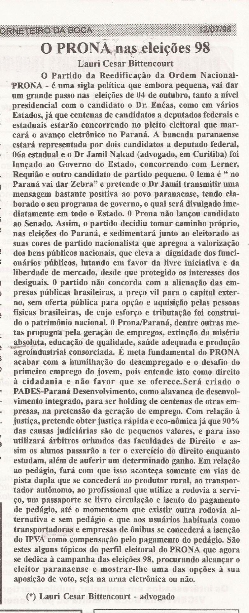 | 63 - O PRONA NAS ELEIĂĂES 98(clique aqui para ver a matéria) |