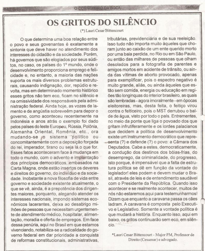 | 64 - OS GRITOS DO SILĂNCIO(clique aqui para ver a matéria) |