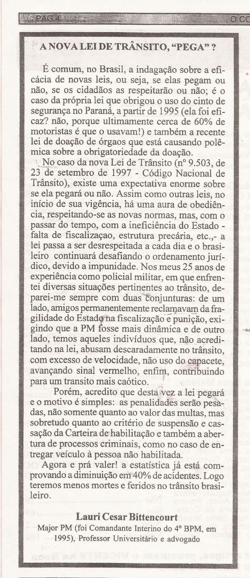 | 65 - A NOVA LEI DE TRĂNSITO, PEGA?(clique aqui para ver a matéria) |