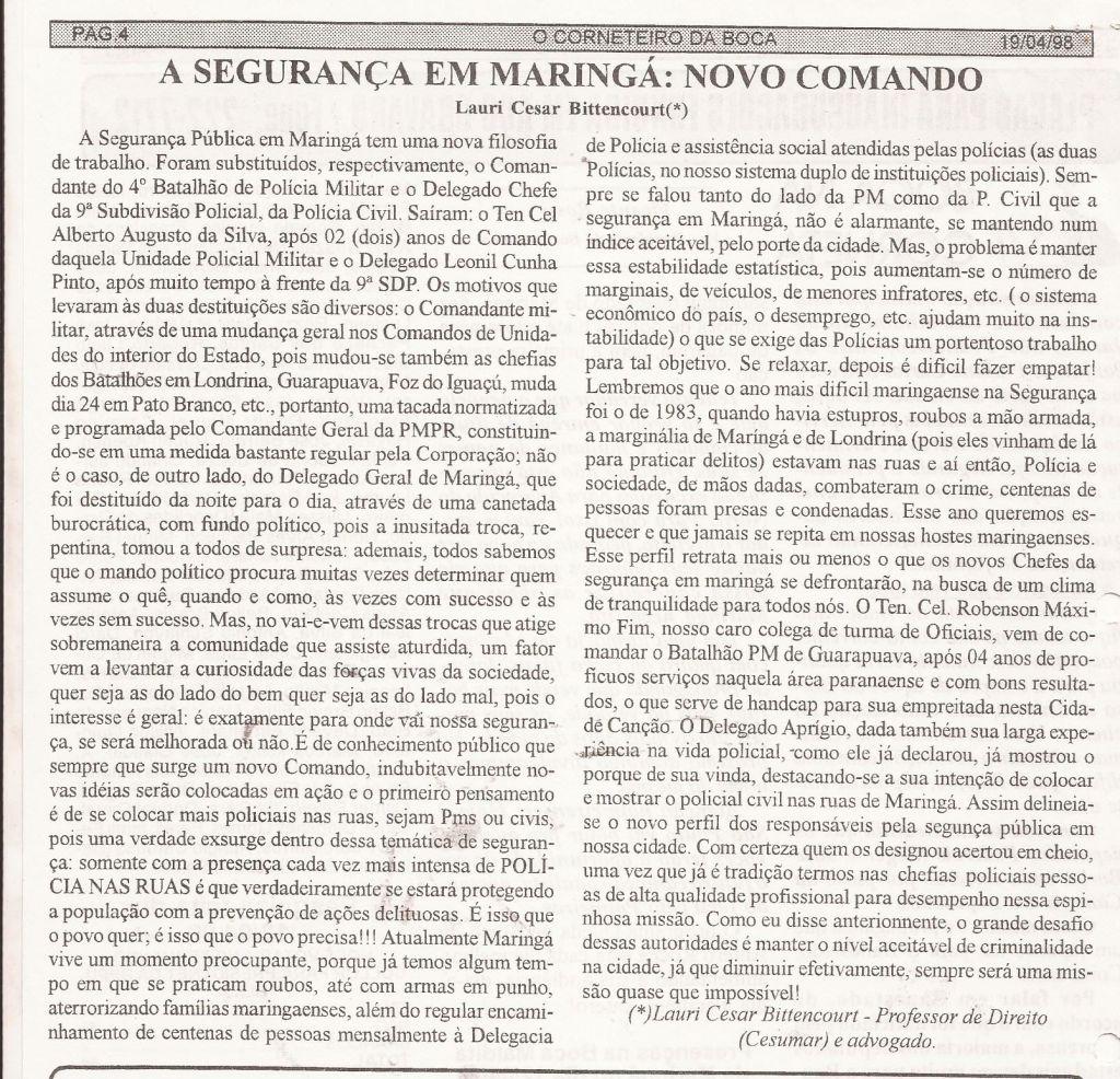 | 68 - A SEGURĂNĂA EM MARINGĂ: NOVO COMANDO(clique aqui para ver a matéria) |