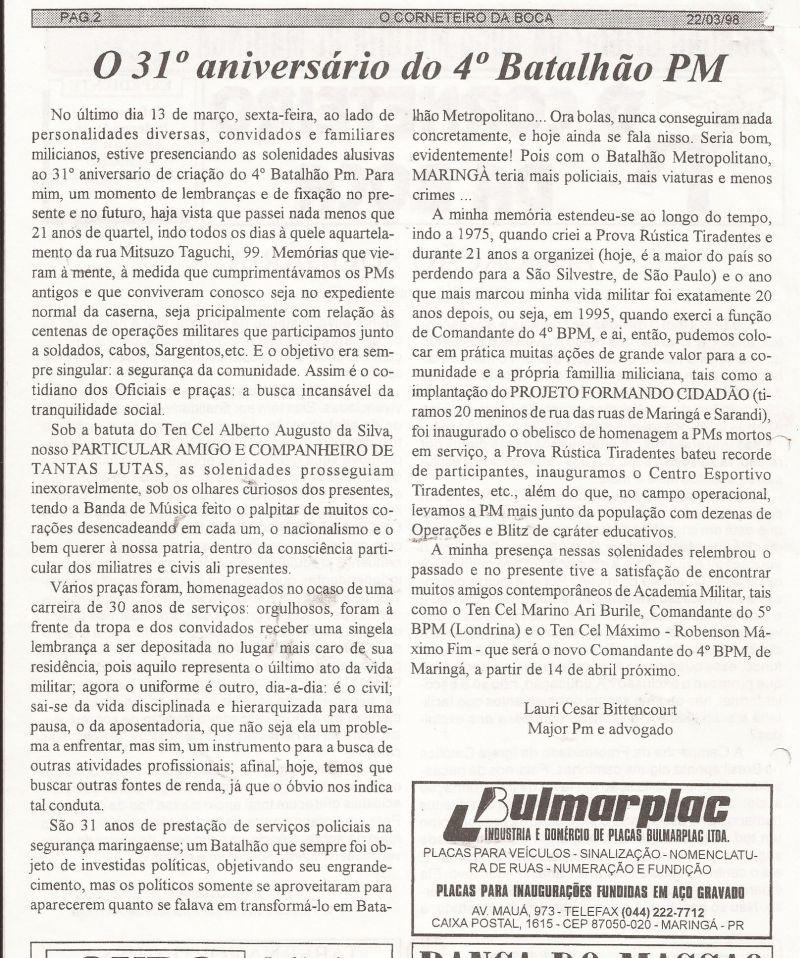 | 70 - O 31Âș ANIVERSĂRIO DO 4Âș BATALHĂO PM(clique aqui para ver a matéria) |