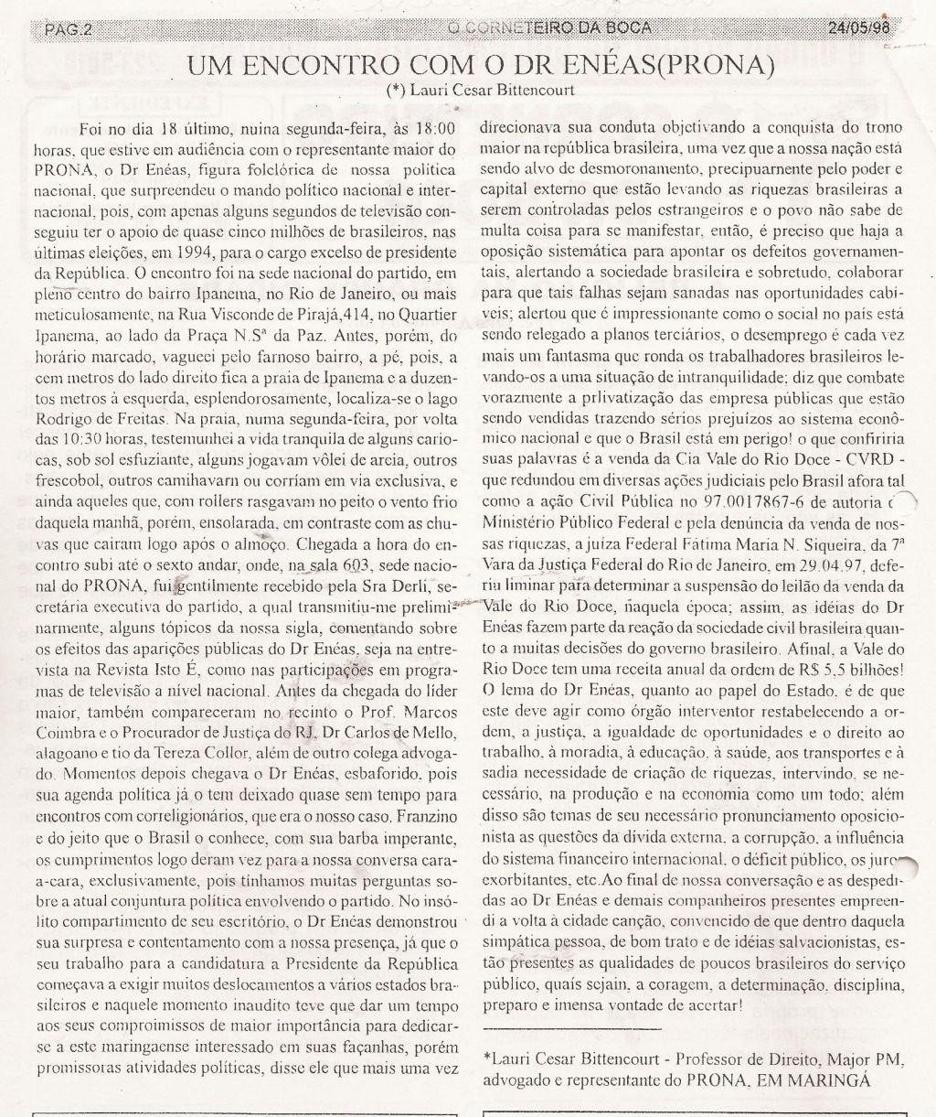 | 71 - UM ENCONTRO COM DR. ENĂAS(PRONA)(clique aqui para ver a matéria) |