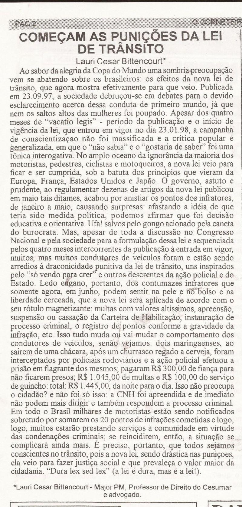 | 72 - COMEĂAM AS PUNIĂĂES DA LEI DE TRĂNSITO(clique aqui para ver a matéria) |