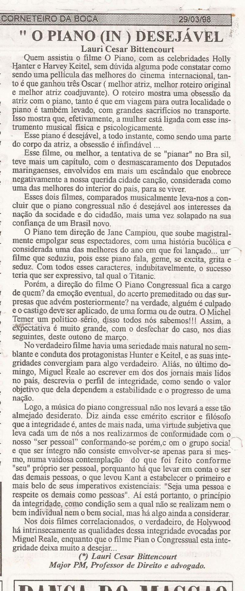 | 73 - O PIANO (IN) DESEJĂVEL(clique aqui para ver a matéria) |