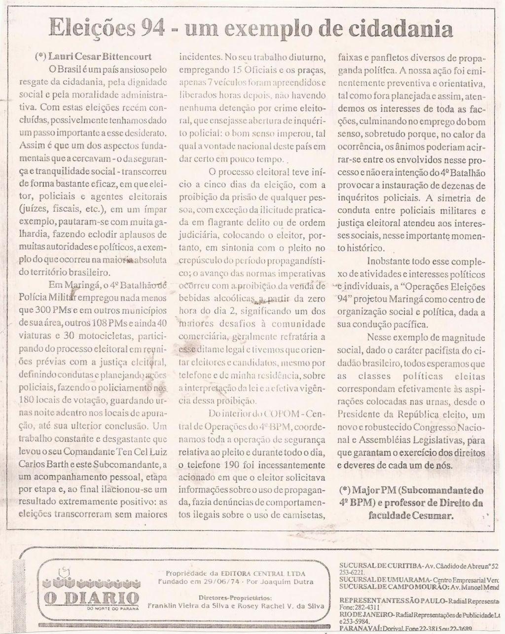| 76 - ELEĂĂES 94, UM EXEMPLO DE CIDADANIA(clique aqui para ver a matéria) |