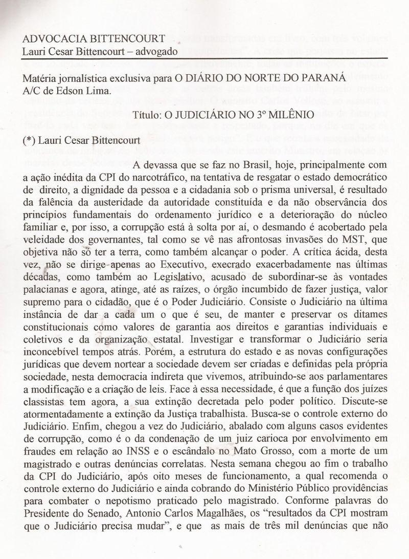 | 79 - O JUDICIĂRIO NO 3Âș MILĂNIO 2/2.(clique aqui para ver a matéria) |