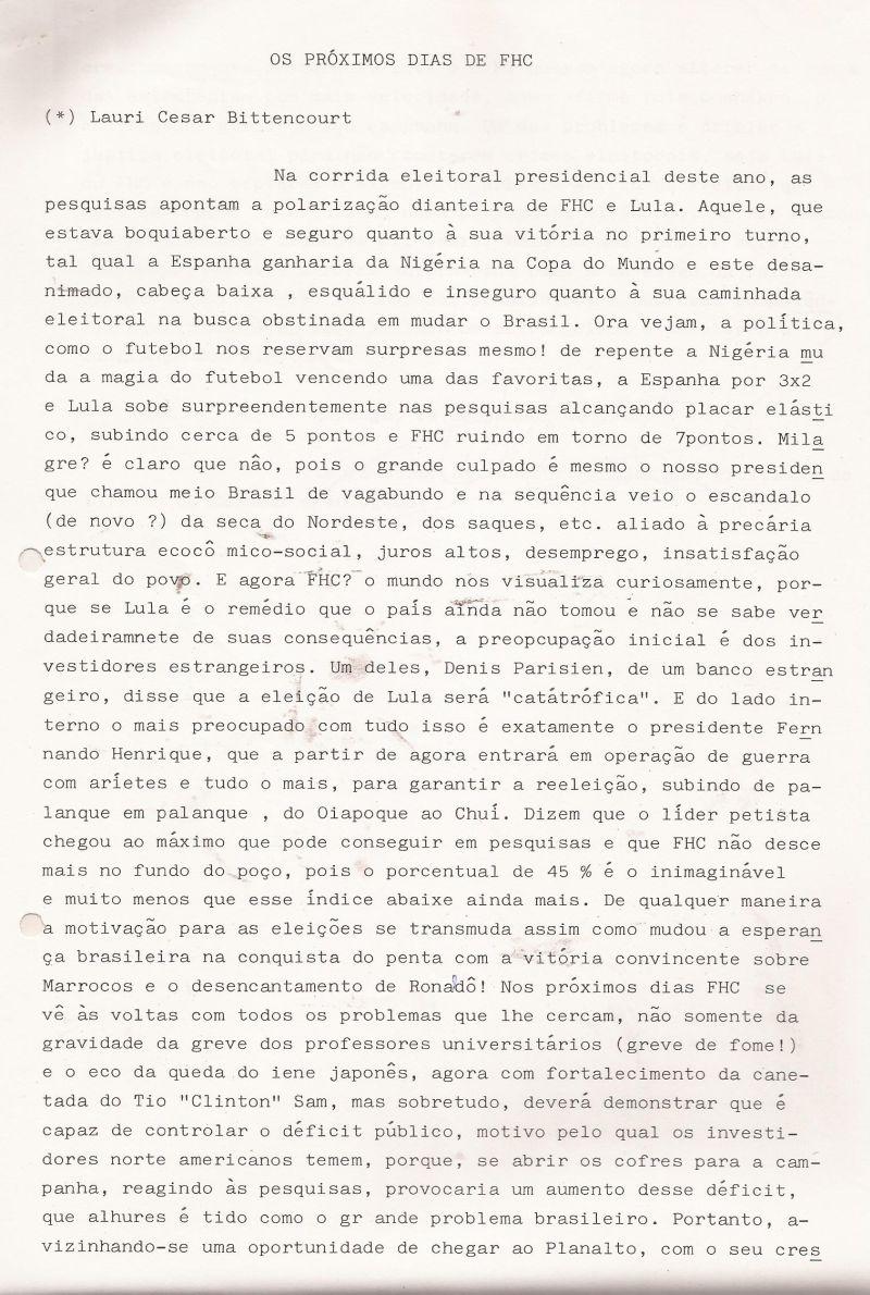 | 83 - OS PRĂXIMOS DIAS DE FHC 2/2.(clique aqui para ver a matéria) |
