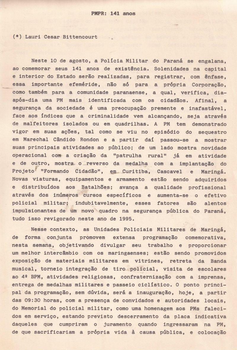 | 89 - PMPR: 141 ANOS 2/2.(clique aqui para ver a matéria) |