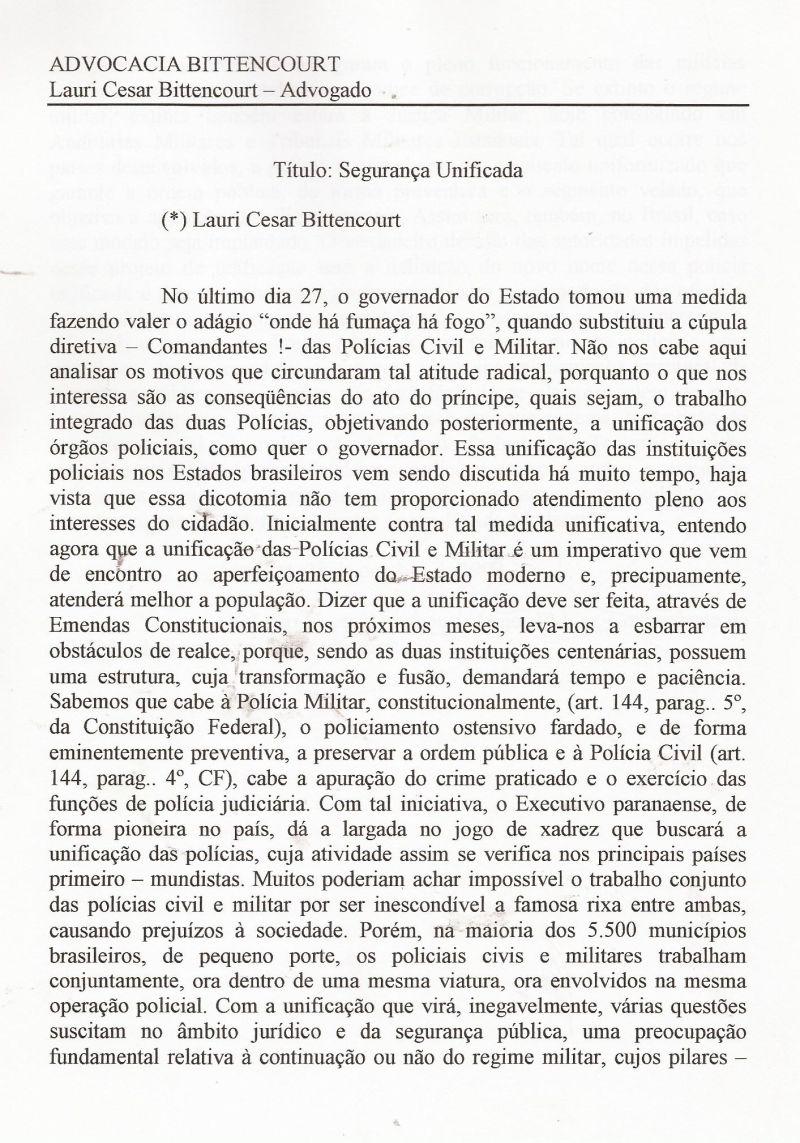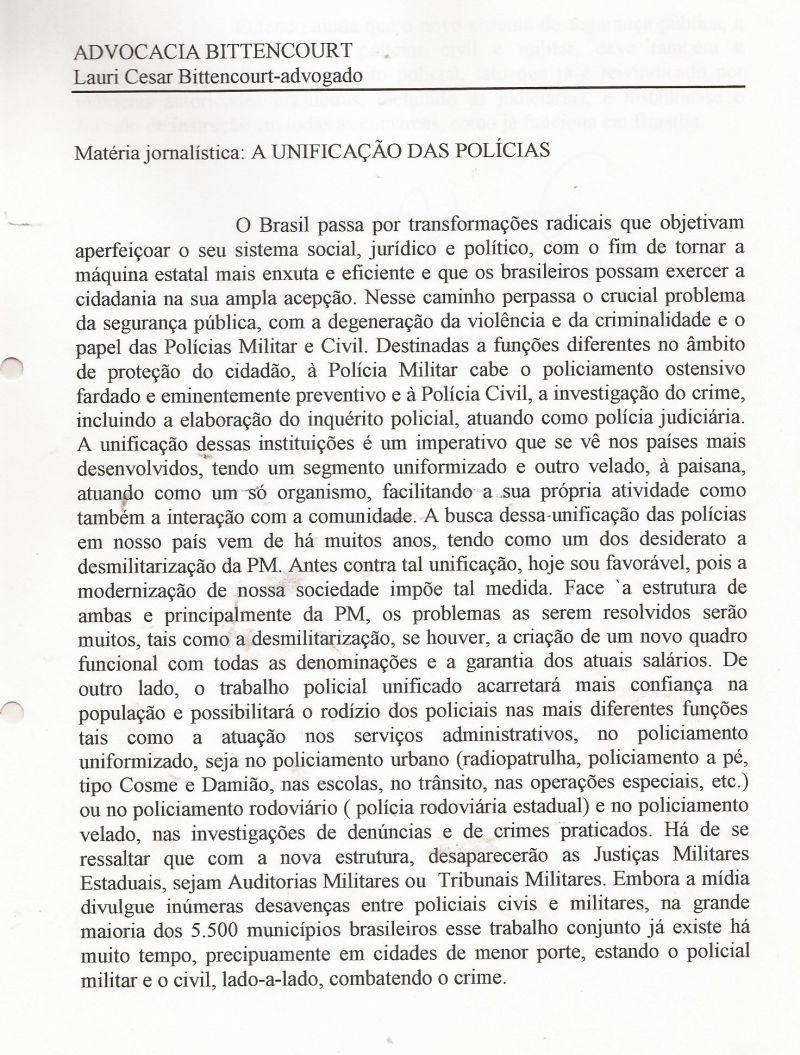 | 107 - A UNIFICAĂĂO DAS POLICIAS 2/2.(clique aqui para ver a matéria) |