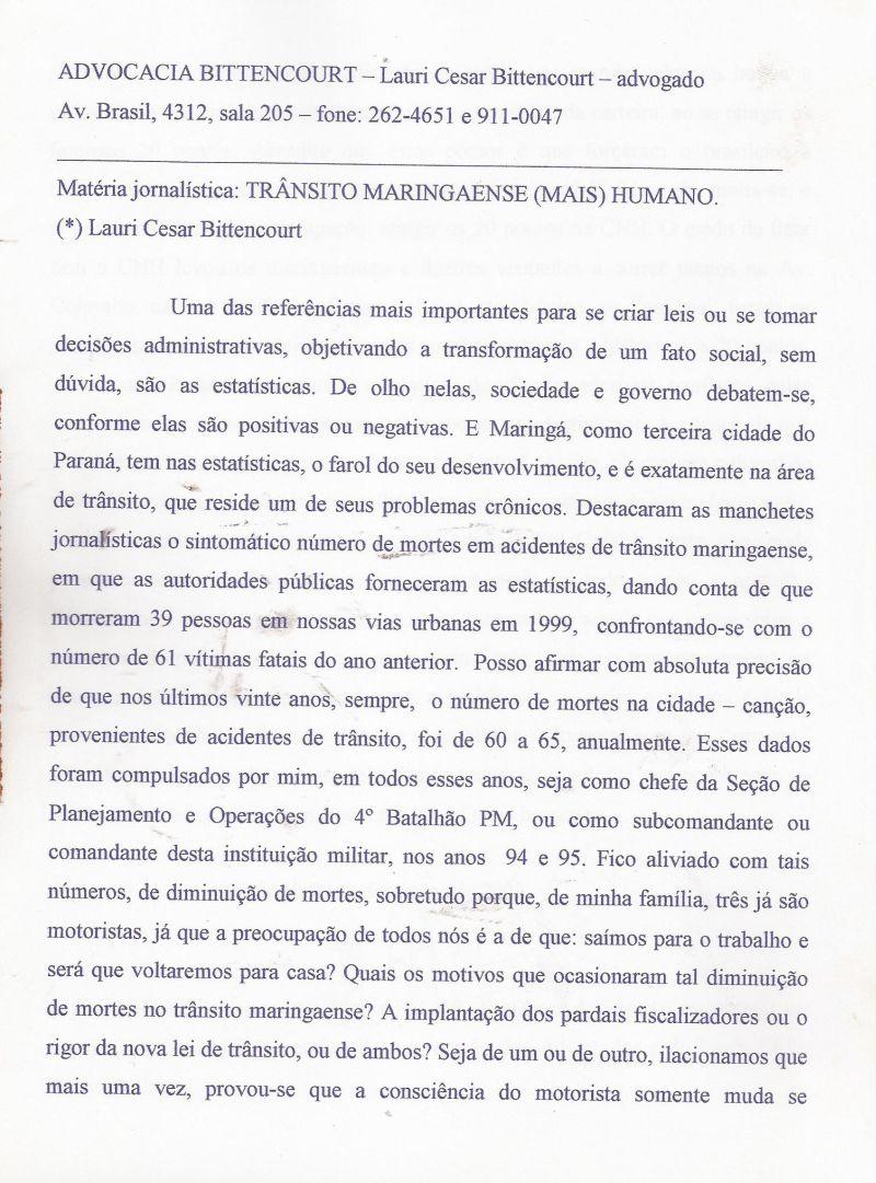 | 97 - TRĂNSITO MARINGAENSE (MAIS) HUMANO 2/2.(clique aqui para ver a matéria) |