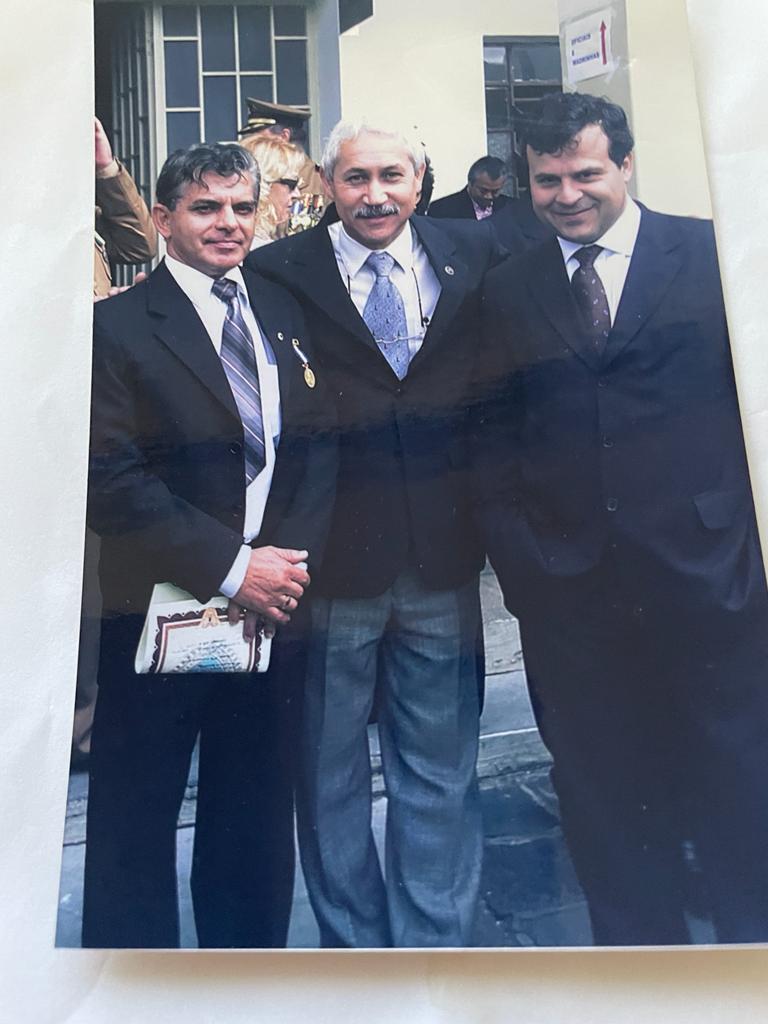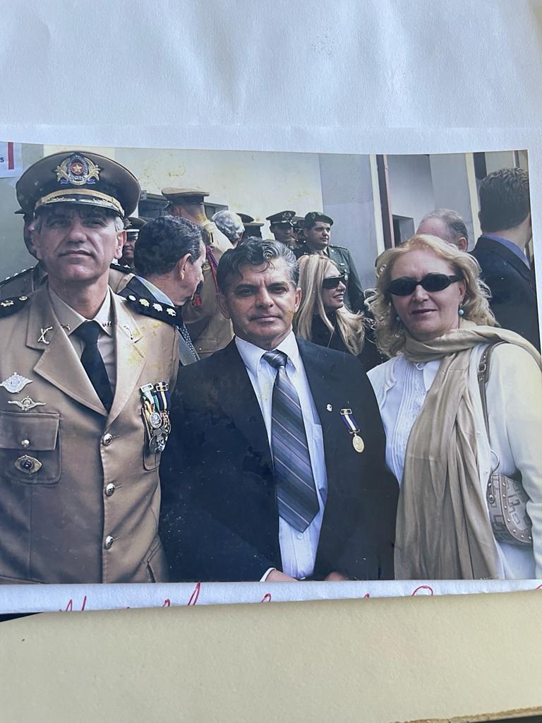 Nessa foto estou como Coronel Aramis Linhares Serpa que indicou meu nome para receber a Medalha Coronel Sarmento. A direita está o Coronel Antônio Tadeu Rodrigues