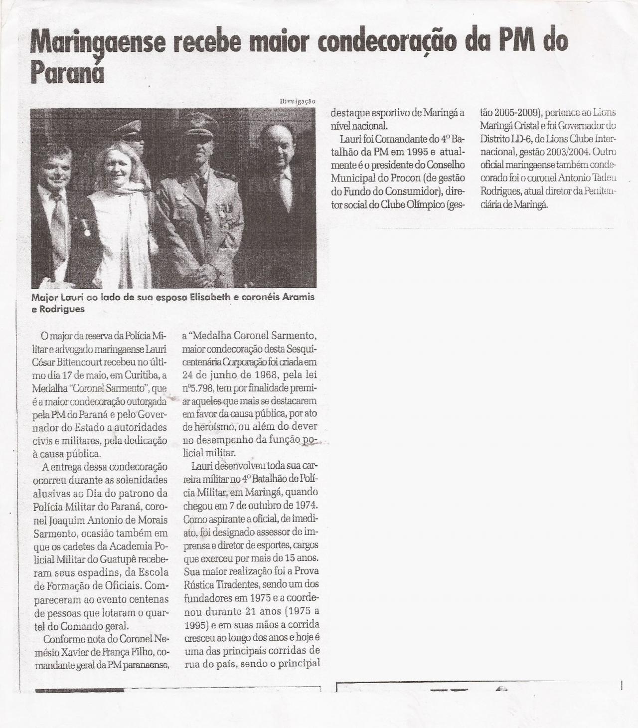 MARINGAENSE RECEBE MAIOR CONDECORAÇÃO DA PM DO PARANÁ